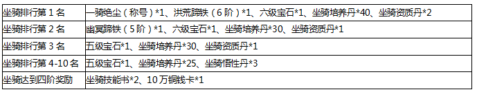 坐骑达到4阶的玩家可领取额外奖励