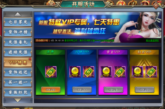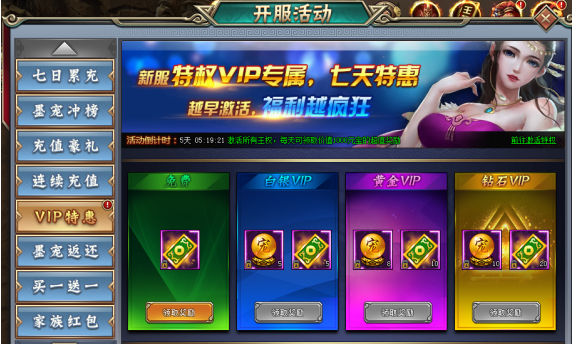 活动期间玩家激活对应VIP王权,即可领取相应VIP王权奖励