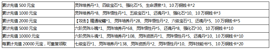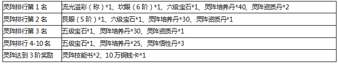 玩家可在活动期间对灵阵进行升阶,与其他玩家竞逐名次赢取奖励