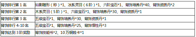 背饰达到3阶的玩家可领取额外奖励