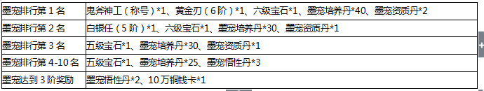 玩家可在活动期间对墨宠进行升阶,与其他玩家竞逐名次赢取奖励