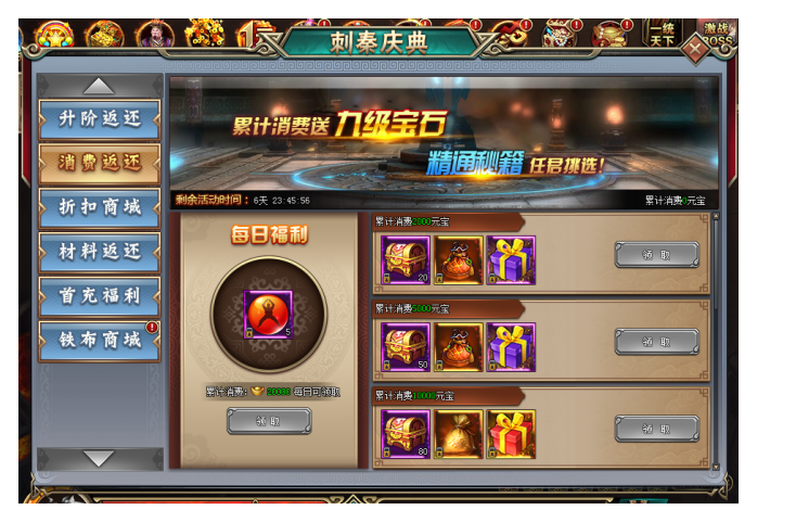 2. 累计消费达到20000元宝的玩家,每日还可领取额外奖励,越早消费越早领取哦~