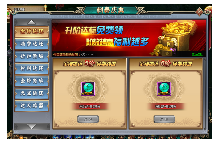 3. 活动期间,玩家金钟罩升级至指定阶数,即可以超低价格购买金钟罩修炼丹