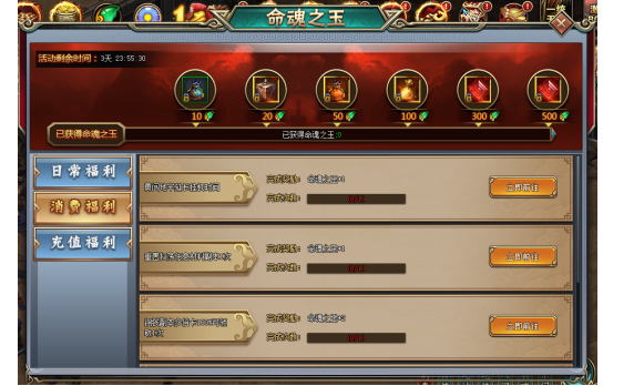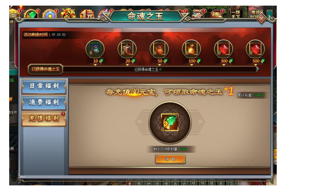 1. 活动期间,每充值30元宝,可领取命魂之玉*1