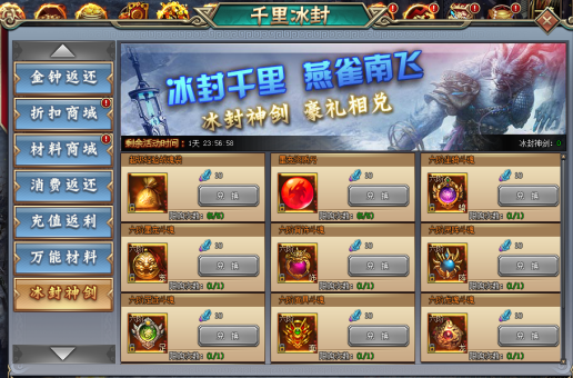 1. »î¶¯ÆÚ¼ä£¬Íæ¼ÒÏûºÄÖ¸¶¨ÊýÁ¿µÄ±ù·âÉñ½££¬¼´¿É¶Ò»»¸÷ɫϡÓеÀ¾ß