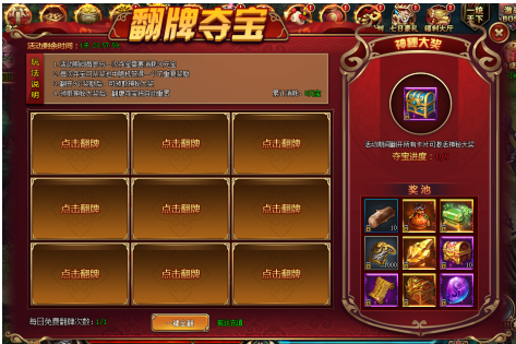 4. 领取神秘大奖后,翻牌夺宝将自动重置