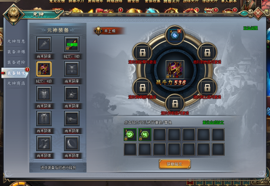 2. 元神装备品阶越高,可装备的元神铭文越多