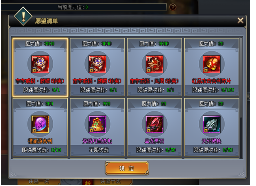 4. 当愿力值达到选中的许愿道具需求值时,下一次许愿必定获得该道具