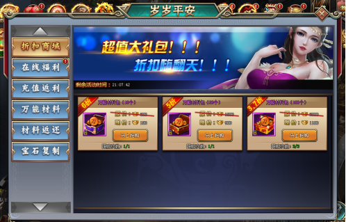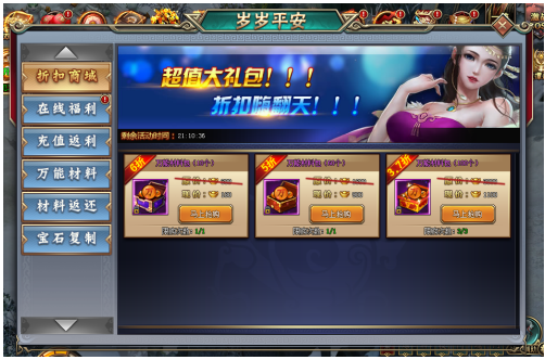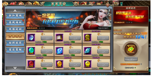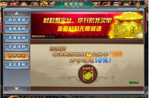 1. 活动期间,玩家可花费元宝购买万能材料包,超低折数,绝对超值!