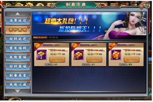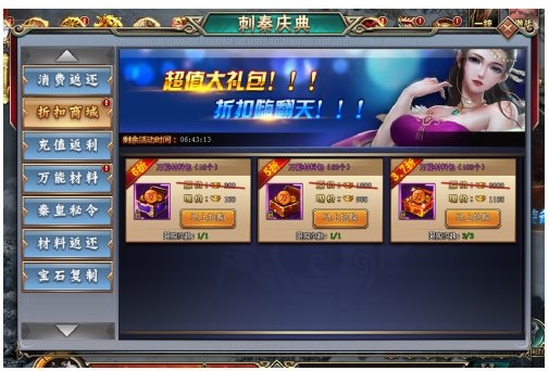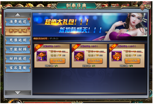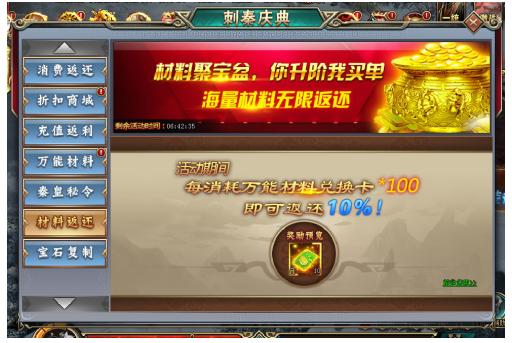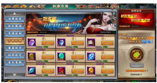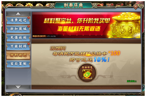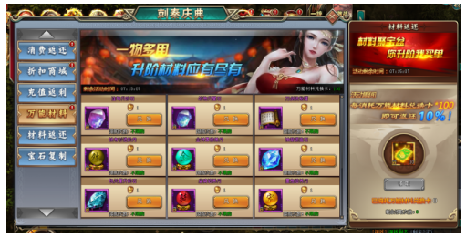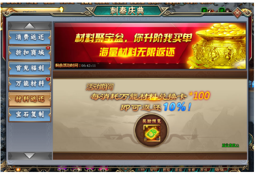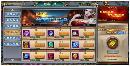 3. 活动期间,玩家可花费元宝购买万能材料包,超低折数,绝对超值!