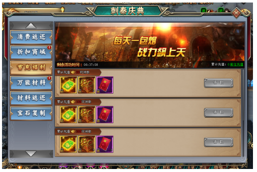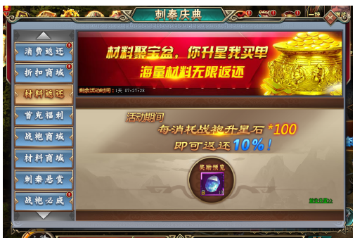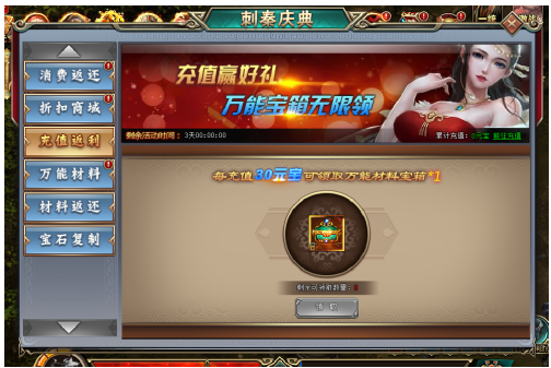 3. 活动期间,每充值30元宝即可领取万能材料宝箱*1
