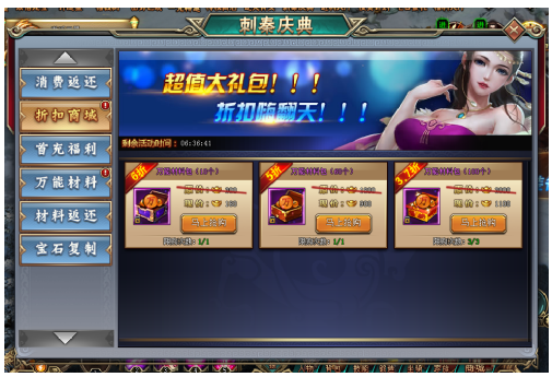1. 活动期间,玩家可花费元宝购买万能材料包,超低折数,绝对超值!
