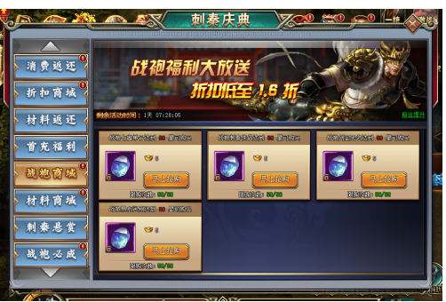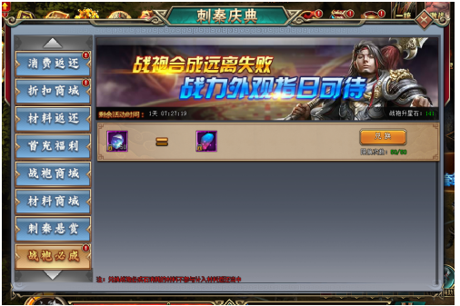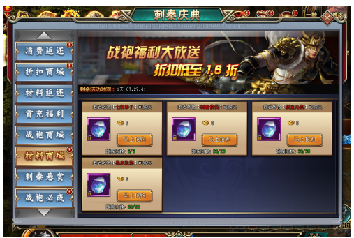 5. 活动期间,玩家可花费元宝购买战袍材料包,超低折数,绝对超值!