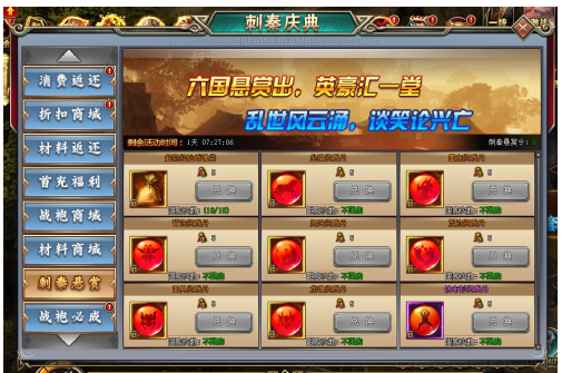 1. 活动期间,玩家可消耗刺秦悬赏令兑换系统资质丹、战袍飞升卡等稀有好礼