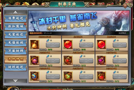1. 活动期间,玩家消耗指定数量的冰封神剑,即可兑换各色稀有道具
