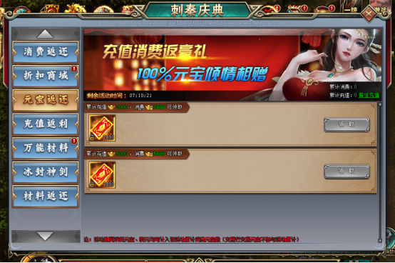 1. 活动期间,玩家累计消费达到指定元宝,即可领取丰厚奖励
