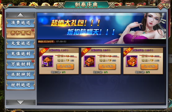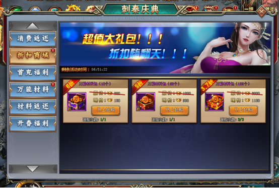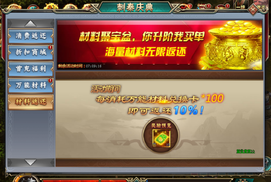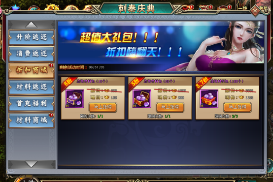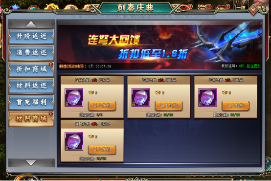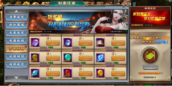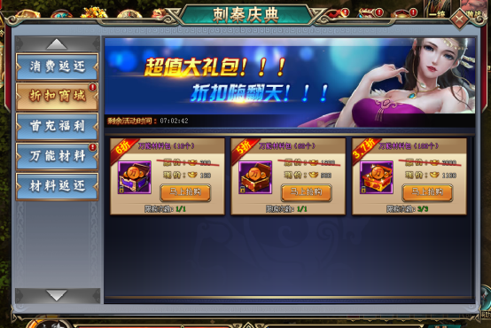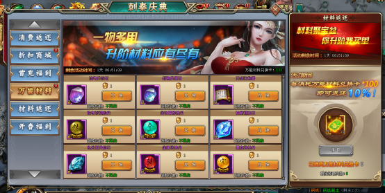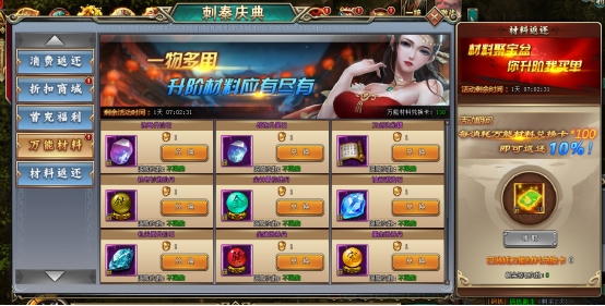 1. 活动期间,玩家可花费元宝购买万能材料包,超低折数,绝对超值!