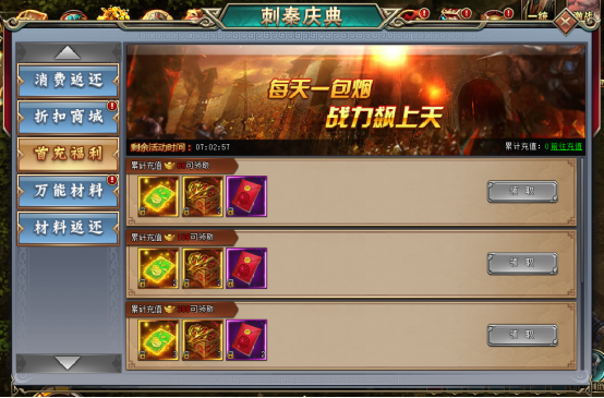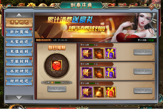 2. 累计消费达到20000元宝的玩家,每日还可领取额外奖励,越早消费越早领取哦~