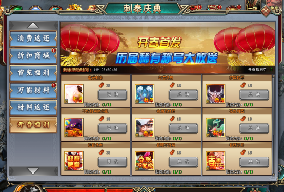 1. 活动期间,消耗开春福利券,即可在活动界面兑换道具奖励,更有以往珍惜称号重磅重现~