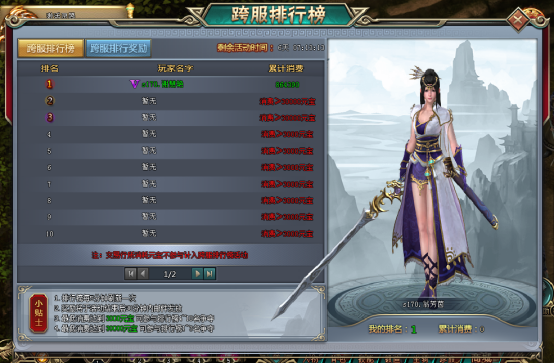 1. 活动期间,可通过消费元宝参与跨服排行榜活动,赢取稀有称号!
