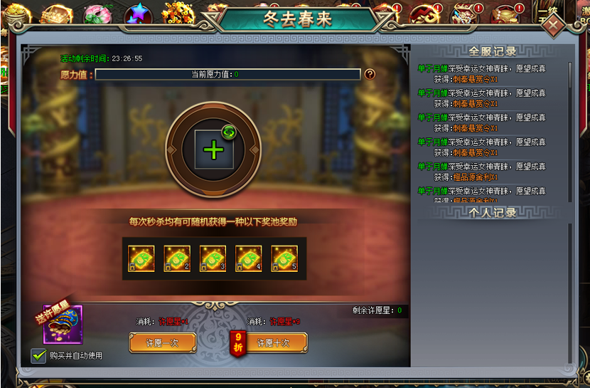 许愿大奖 | 愿力值 | 限许愿次数 |