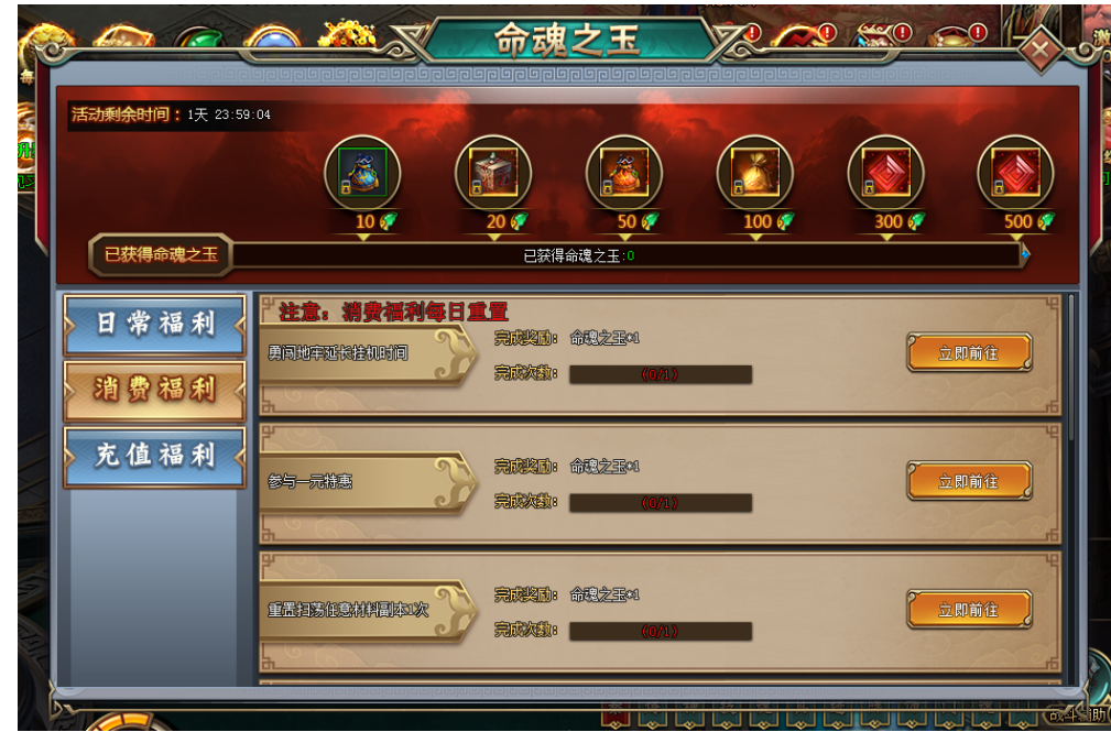 【活动内容】活动期间,完成指定消费目标任务,即可获得限时道具命魂之玉