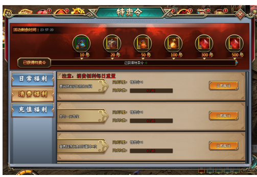 2. 收集特卖令达到指定数量,即可领取超级经验战魂袋、七级宝石等珍稀奖励