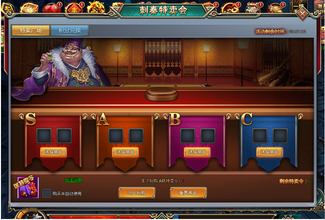 1. 活动期间,玩家可在活动界面选择相应品质的特卖商品进行抢购