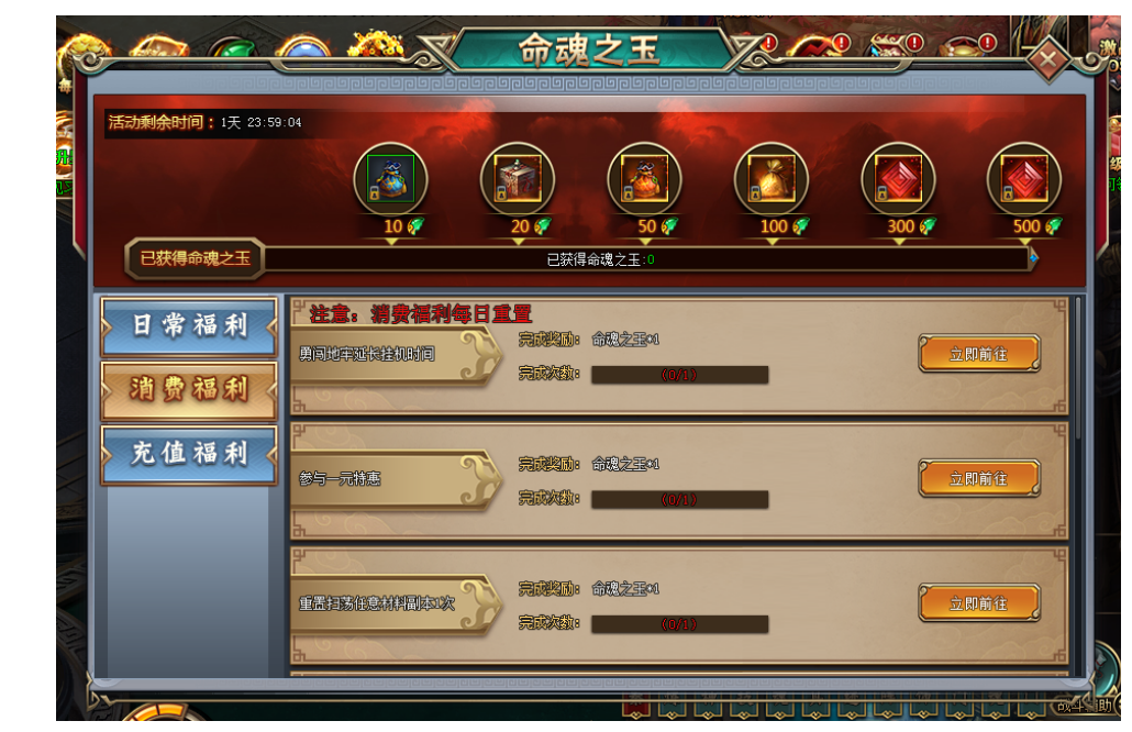 【活动内容】活动期间,完成指定消费目标任务,即可获得限时道具命魂之玉