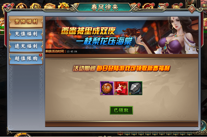 1. 活动期间,玩家每日登陆游戏即可领取活动奖励