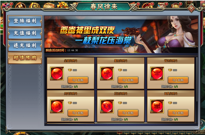 1. 活动期间消费指定元宝即可购买超值豪礼