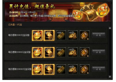 【活动内容】活动期间,每日充值达到指定金额,即可领取超值豪礼!