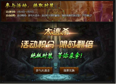 【活动内容】活动期间,参与大逃杀,活动积分限时翻倍,换取绝版时装奖励,不容错过!