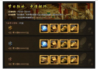 【活动内容】活动期间,累计提取元宝达到指定金额,即可参与排行。