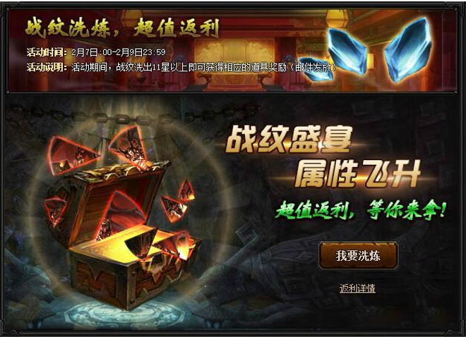 【活动内容】活动期间,战纹洗练达到相应星级后即可获得相应的战纹结晶奖励!(邮件发放)