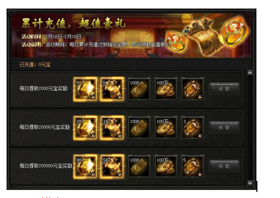 【活动内容】活动期间,每日充值达到指定金额,即可领取超值豪礼!