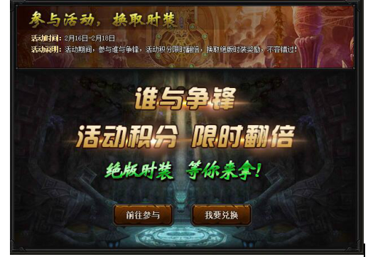 【活动内容】活动期间,参与大逃杀,活动积分限时翻倍,换取绝版时装奖励,不容错过!