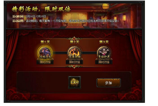 【活动内容】活动期间,每天都有一个双倍加成,活动当天完成对应玩法即可获得双倍奖励。