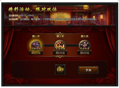 【活动内容】活动期间,每天都有一个双倍加成,活动当天完成对应玩法即可获得双倍奖励。
