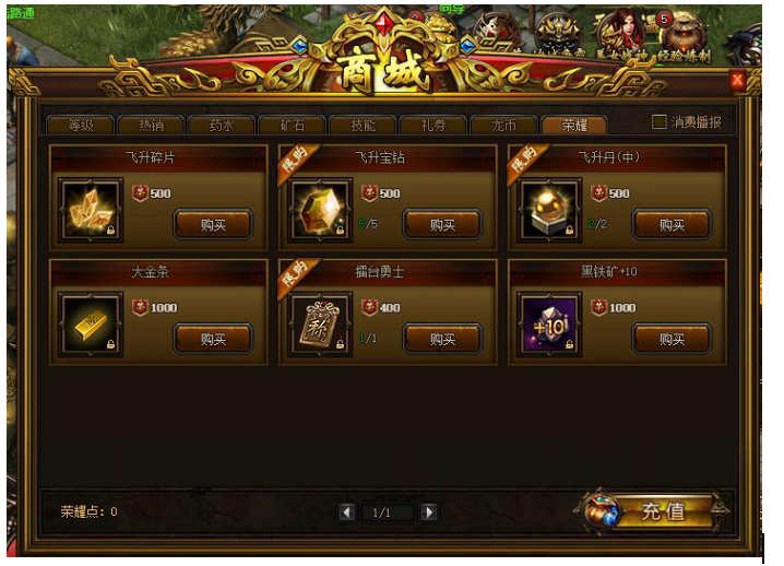在参与活动的过程中,按战斗结果将会获得荣耀点奖励,获胜获得200荣耀点数,失败获得100荣耀点数,平局获得100荣耀点数,荣耀点数可以在荣耀商城中购买稀有称号“擂台勇士”及其他超值道具。