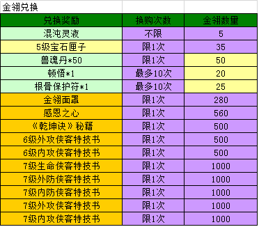 活动内容:活动期间,开放金翎时装、金翎坐骑、7级特技书和秘籍兑换。各奖励只可兑换一次。