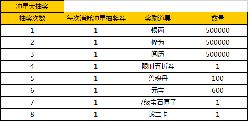 2.只能使用抽奖券参与抽奖,抽奖券由冲星目标活动中产出。