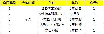 【活动内容】活动期间,玩家身上装备强化总等级和(主角和侠客总等级和)满足一定条件即可领取奖励。