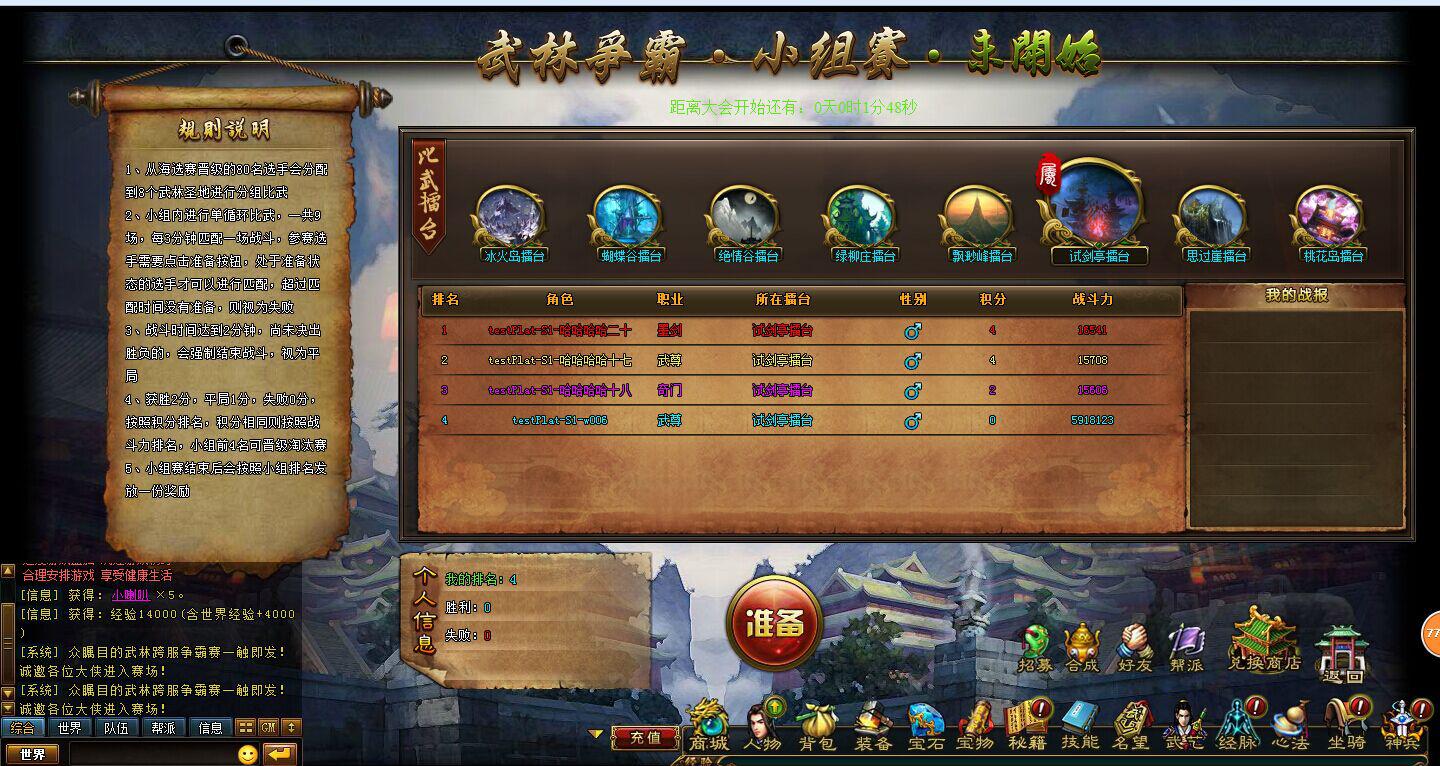 2、小组内进行单循环比武,一共9场,每3分钟匹配一场战斗,参赛选手需要点击准备按钮,处于准备状态的选手才可以进行匹配,超过匹配时间没有准备,则视为失败