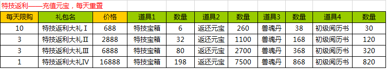 活动内容:活动期间开启每日礼包限时抢购活动,大量返利等你来。