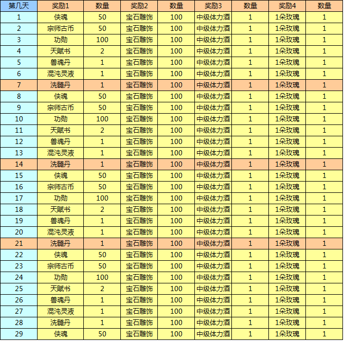 2、玩家累计充值7天、14天、21天,无论充值多少元宝都能领取额外累积奖励。