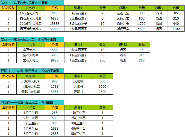活动内容:活动期间开启每日礼包限时抢购活动,大量返利等你来。
