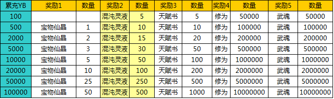 活动内容:活动期间玩家只要充值达到100、500、2000、5000、10000、20000、50000、100000元宝,即时可从面板上领取相应额度的返利奖励!(即假设玩家最终累计充值2000元宝,则一共可领取前3个额度的馈赠)