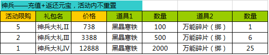 1、活动期间,各个礼包限量限时购买;
