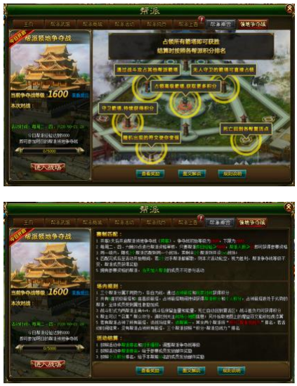 6)每次战斗结束之后能获得一定的帮派积分和个人积分,战斗胜利的帮派获得的积分多